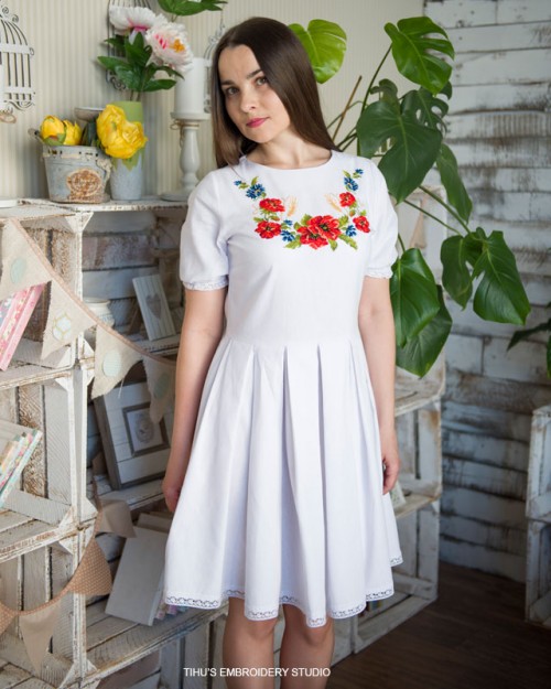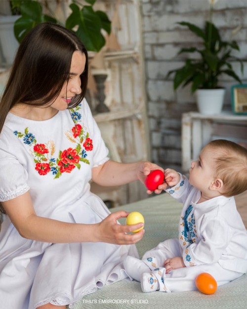 Rochia este creată din pânză naturală, tradițională românească, sustenabilă, 100 % bumbac, prietenoasă ecosistemului și corpului, antialergică și aerată care lasă pielea să respire. Este disponibilă și din alte tesături, la alegere.
