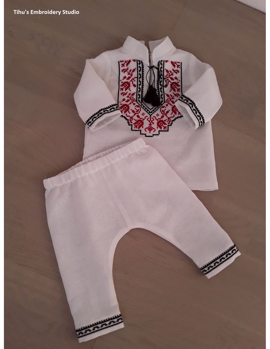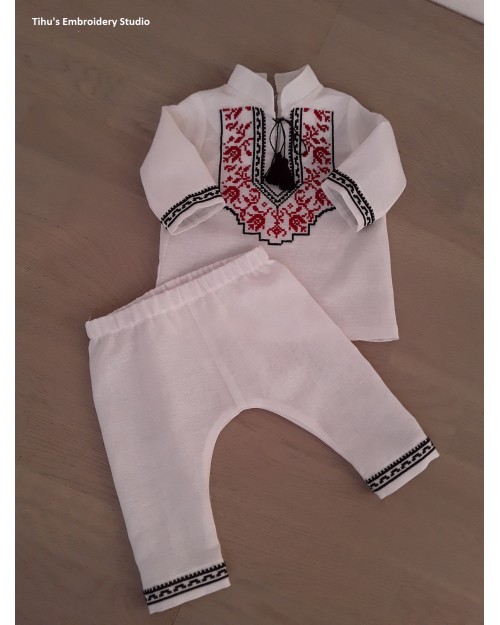 Străițele de botez sunt create din pânză naturală, tradițională românească, sustenabilă, 80% Cânepă și 20% bumbac, prietenoasă ecosistemului și corpului bebelușului, antialergică și aerată care lasă pielea să respire. Setul de străițe conține: cămășuța cu guleraș stei, pantaloni. Cămășuța se închide cu nasturi la spate. Pantalonii sunt cu elastic. Fiecare articol din componența setului se poate achiziționa și separat. Setul poate fi completat cu alte articole sau cu trusoul de botez.