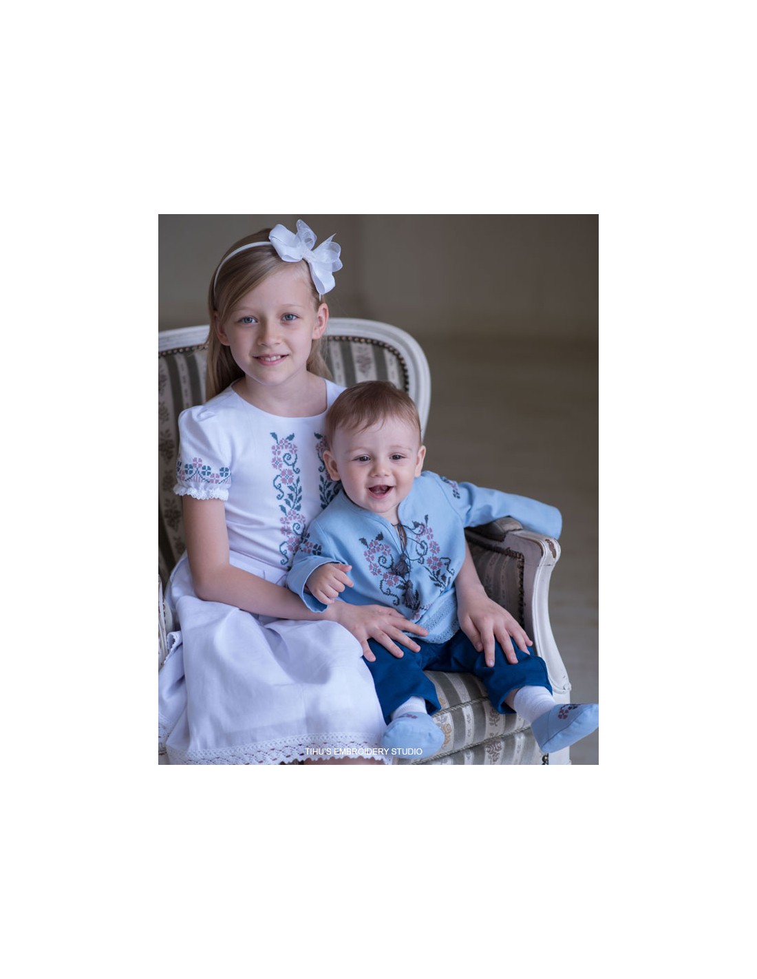 Setul include rochia pentru fetiță, cămașă și botoșei pentru bebe băiețel. Fiecare articol din componența setului poate fi achiziționat separat.