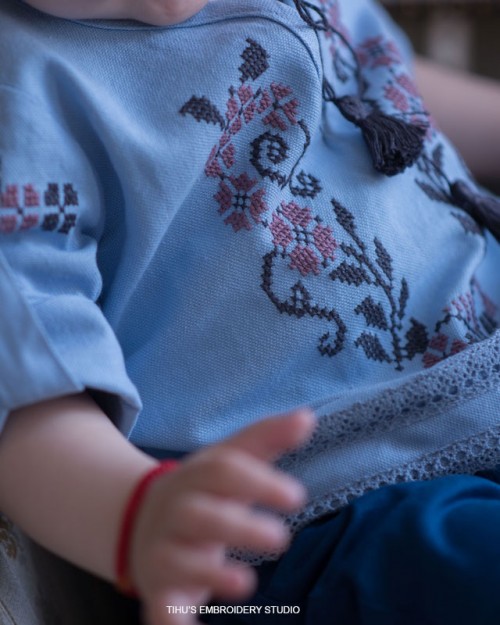 Pânză utilizată: Pânză albă de Bumbac, 100 % și Pânză de Casă, Bleu Ciel.