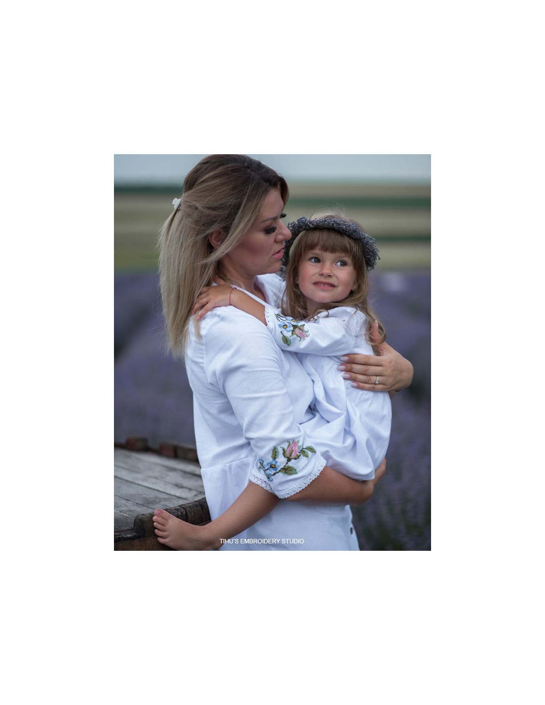 Articolele din setul de străițe de familie sunt create din pânză naturală, tradițională românească, sustenabilă, 100 %, prietenoasă ecosistemului și corpului, antialergică și aerată care lasă pielea să respire. Nasturii sunt din lemn.