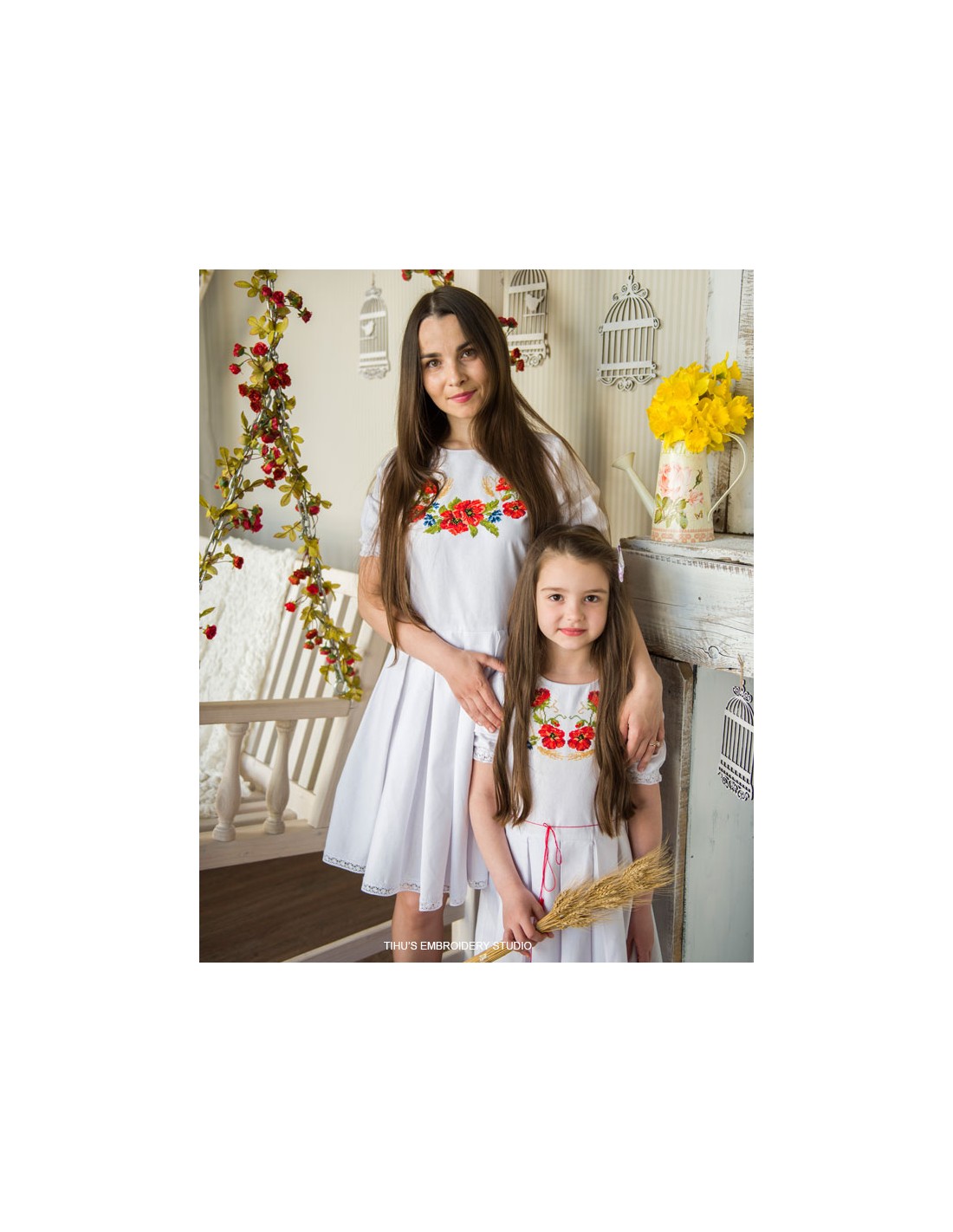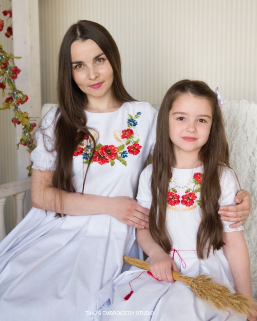 Setul include set de străițe pentru bebe fetiță : rochiță, botoșei, bentiță, rochie pentru fetiță și rochie damă (mărimile solicitate).