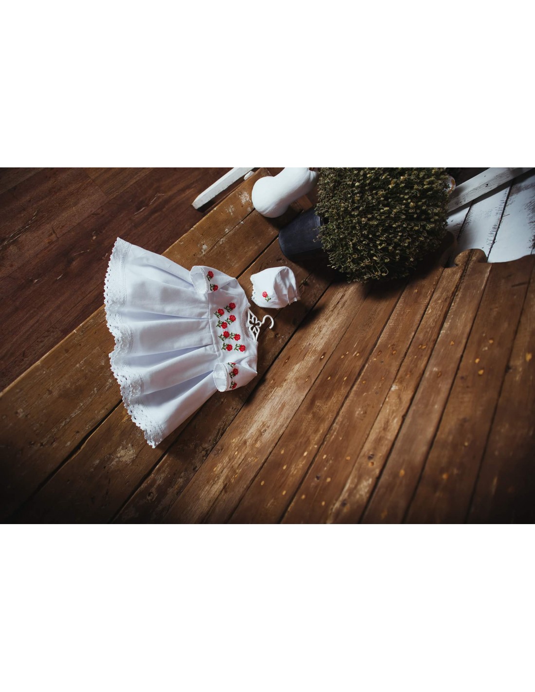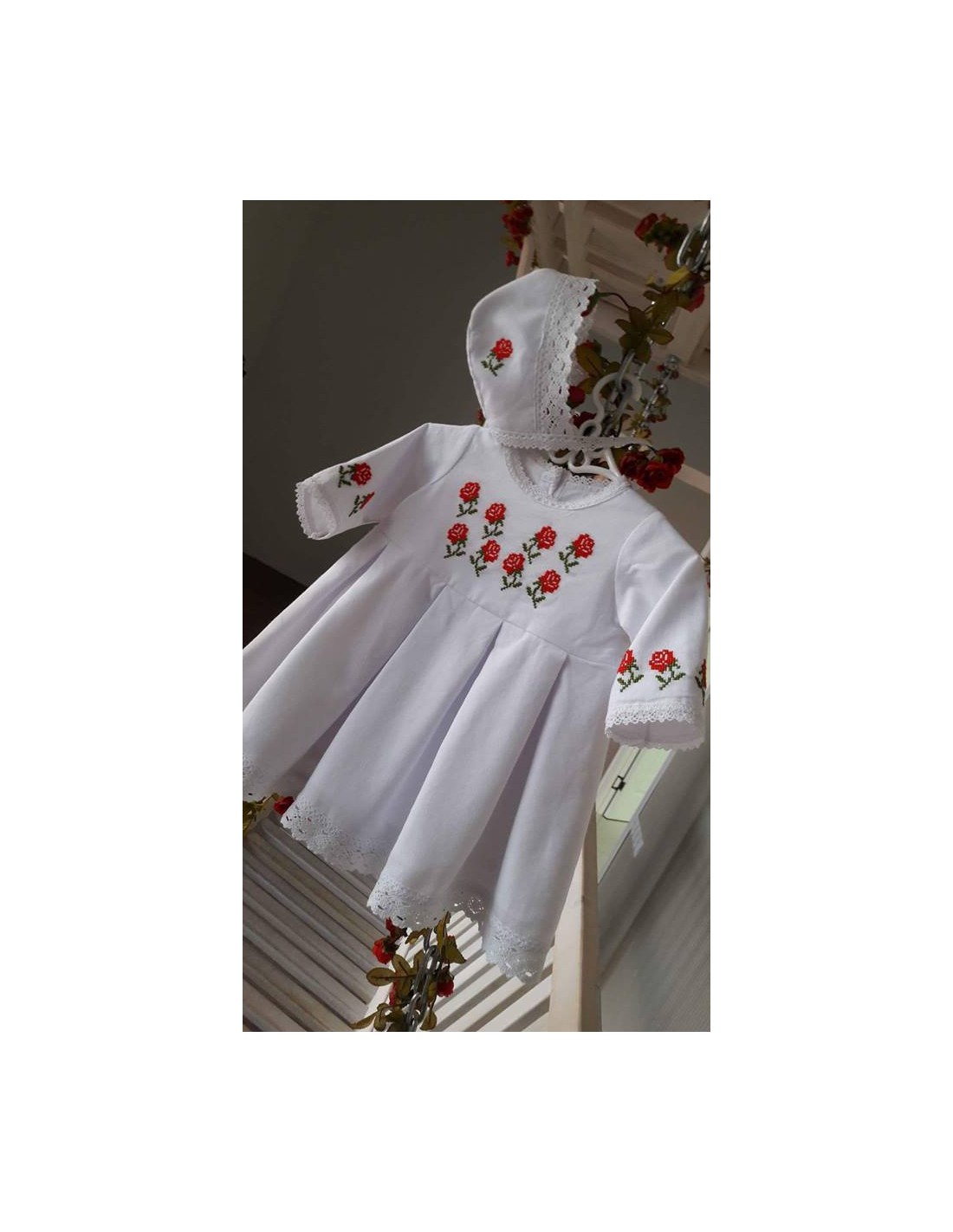 Străițele de botez sunt create din pânză naturală, tradițională românească, sustenabilă, 100 % bumbac, prietenoasă ecosistemului și corpului bebelușului, antialergică și aerată care lasă pielea să respire. Setul este disponibil a fi creat din pânză de bumbac sau cânepă. Setul de străițe conține: rochiță, scufiță, botoșei.Rochița se închide cu nasturi la spate. Fiecare articol din componența setului se poate achiziționa și separat.