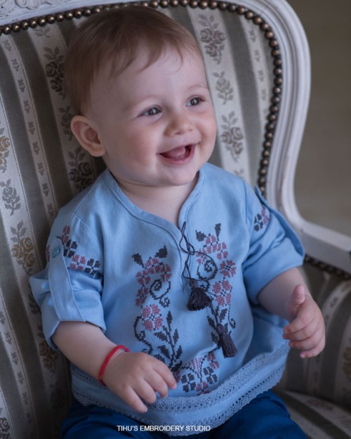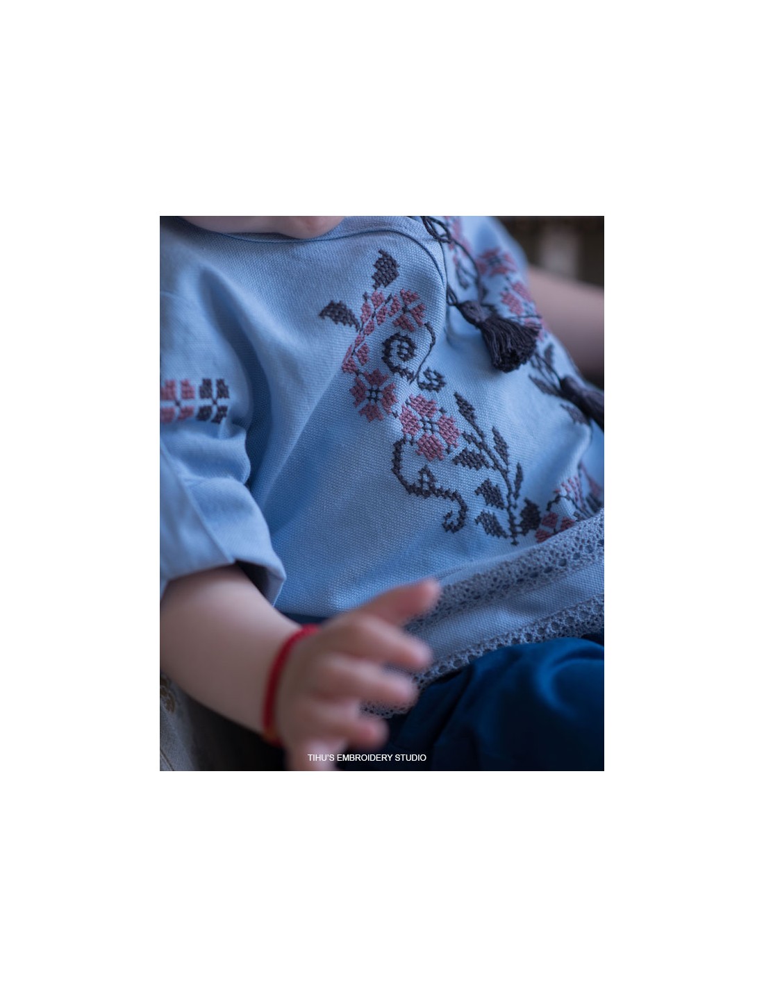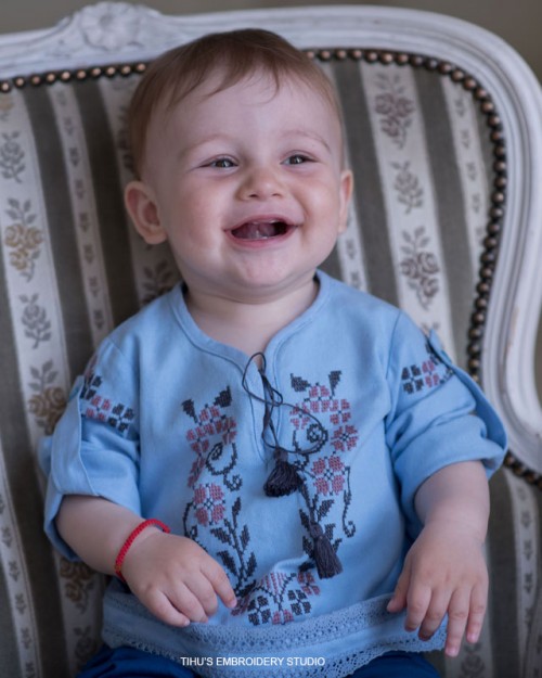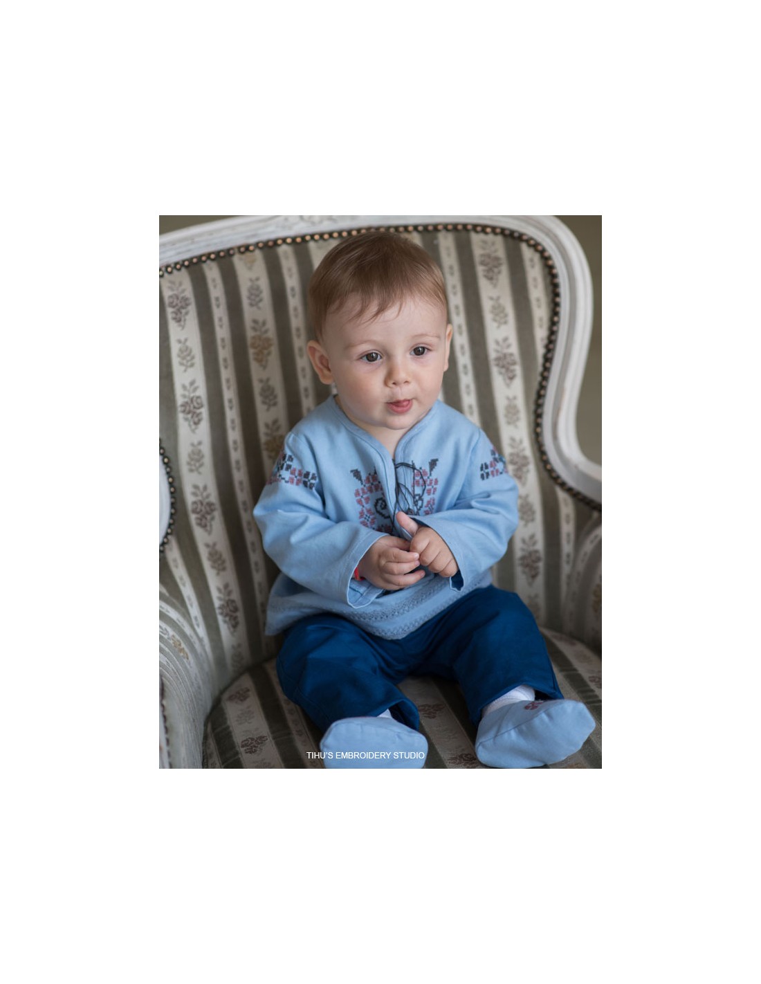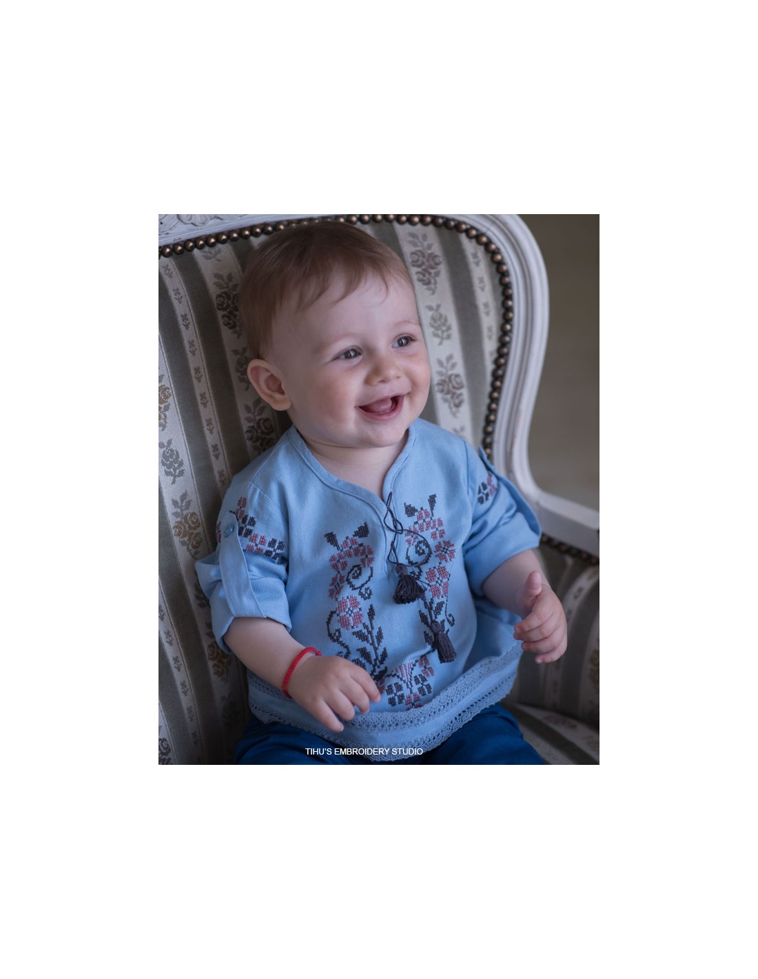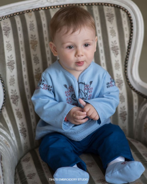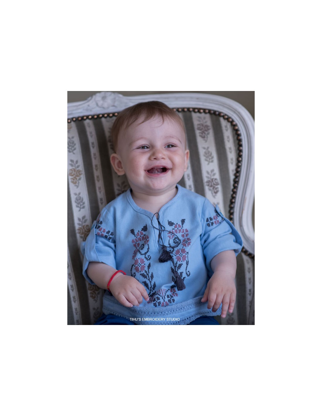 Setul de străițe conține: cămășuța cu guleraș stei și boteșei. Cămășuța se închide cu nasturi la spate.