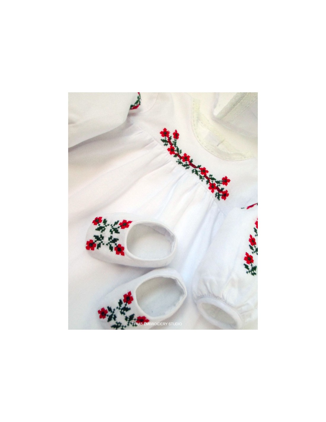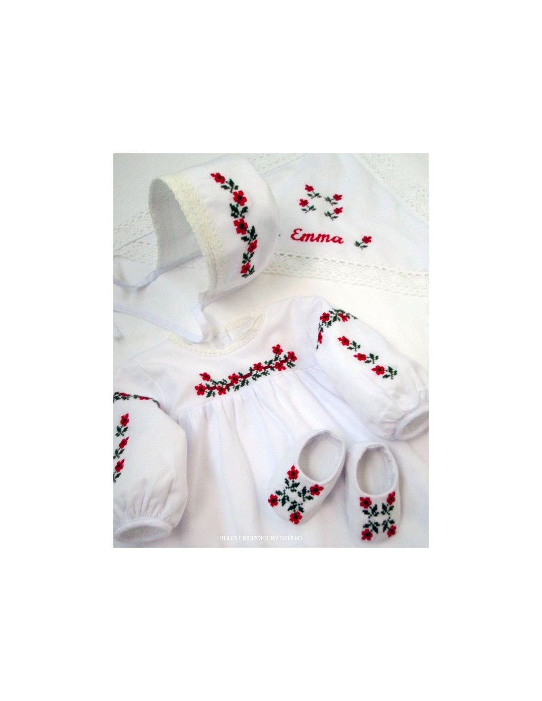 Străițele de botez sunt create din pânză naturală, tradițională românească, sustenabilă, 100 % bumbac, prietenoasă ecosistemului și corpului bebelușului, antialergică și aerată care lasă pielea să respire. Setul poate fi creat și din pânză de borangic sau cânepă. Setul de străițe conține: rochiță, scufiță, botoșei, brâu. Rochița se închide cu nasturi la spate. Fiecare articol din componența setului se poate achiziționa și separat.