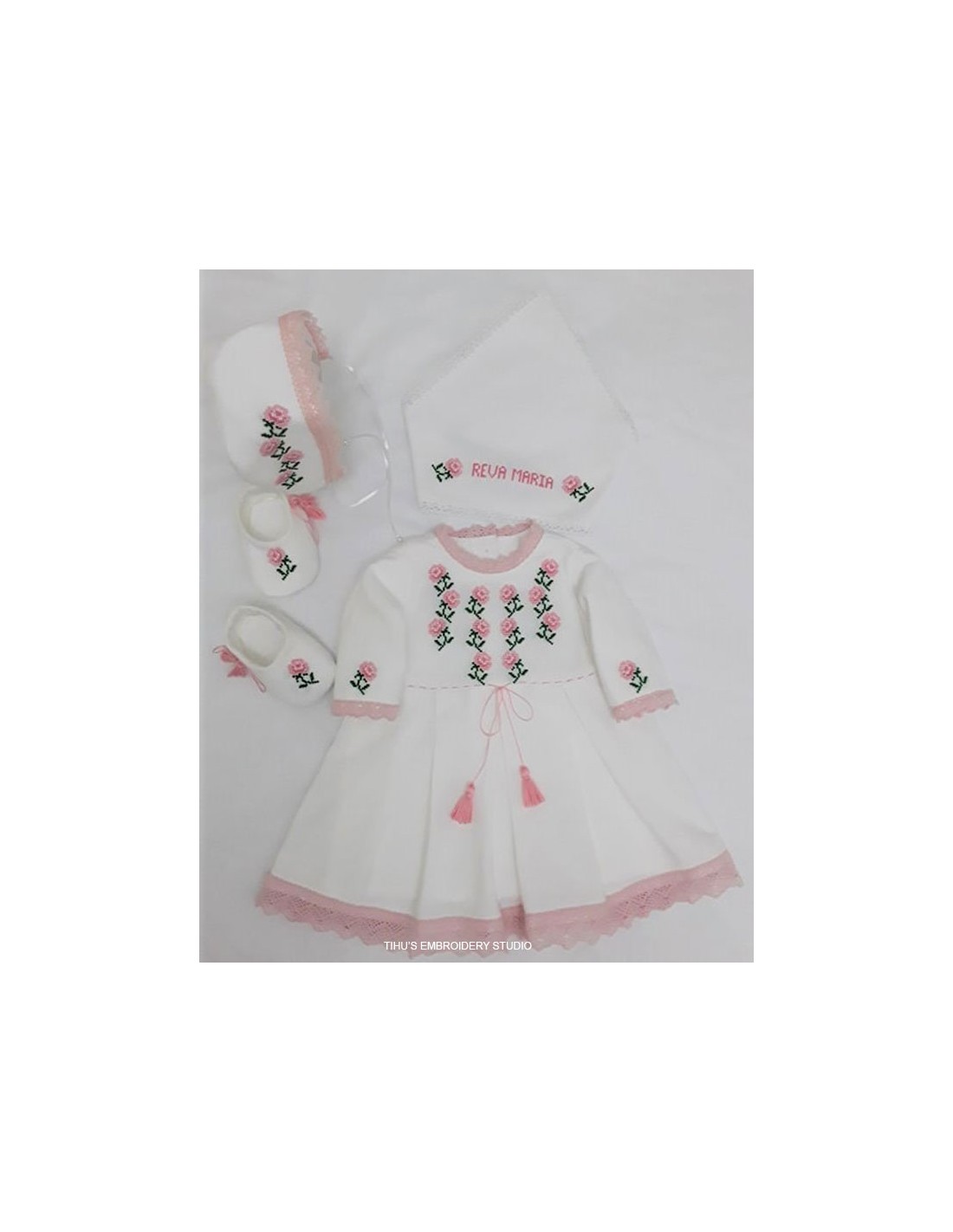 Străițele de botez sunt create din pânză naturală, tradițională românească, sustenabilă, 100 % bumbac, prietenoasă ecosistemului și corpului bebelușului, antialergică și aerată care lasă pielea să respire. Setul poate fi creat și din pânză de borangic sau cânepă. Setul de străițe conține: rochiță, scufiță,basma, botoșei.. Rochița se închide cu nasturi la spate. Fiecare articol din componența setului se poate achiziționa și separat.