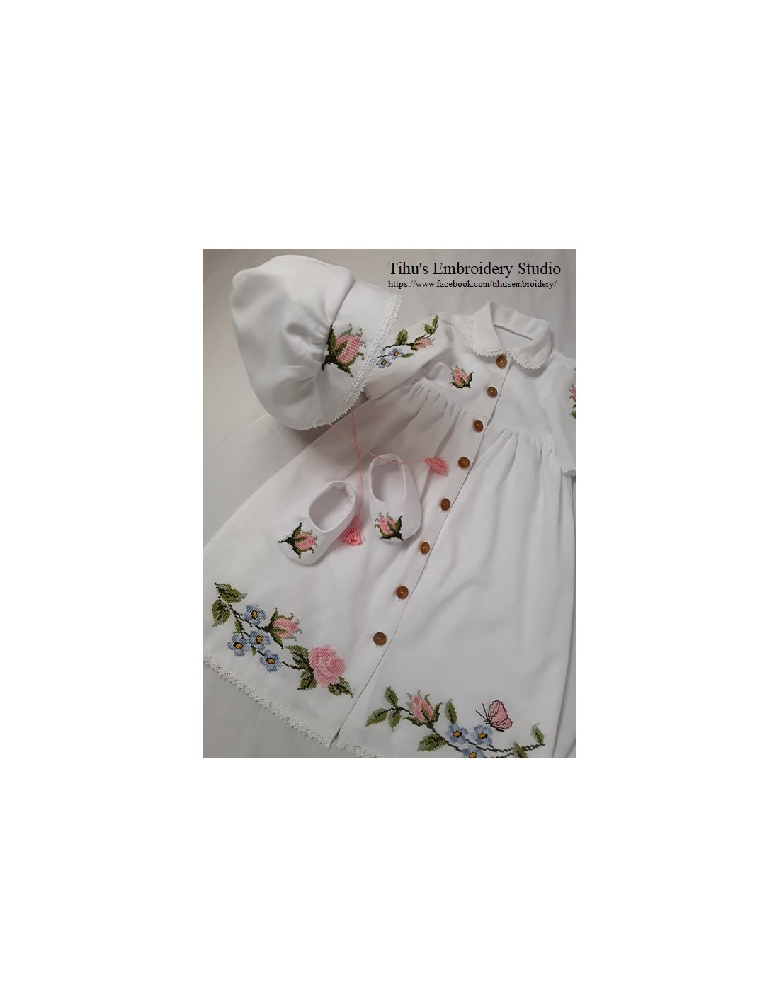 Străițele de botez sunt create din pânză naturală, tradițională românească, sustenabilă, 100 % bumbac, prietenoasă ecosistemului și corpului bebelușului, antialergică și aerată care lasă pielea să respire. Setul poate fi creat și din pânză de borangic sau cânepă. Setul de străițe conține: rochiță, scufiță, botoșei. Rochița se închide cu nasturi de lemn. Fiecare articol din componența setului se poate achiziționat separat.