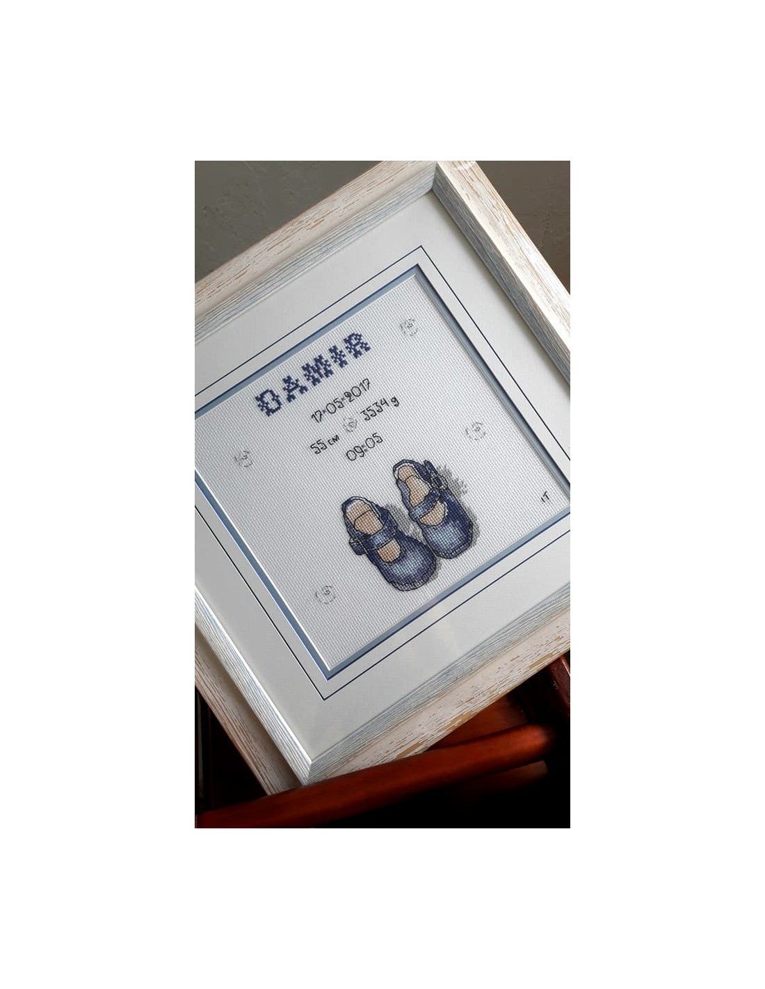 Tabloul este personalizat prin brodare manuală cu datele solicitate (data de naștere, ora, greutatea bebelușului, înălțime etc).
