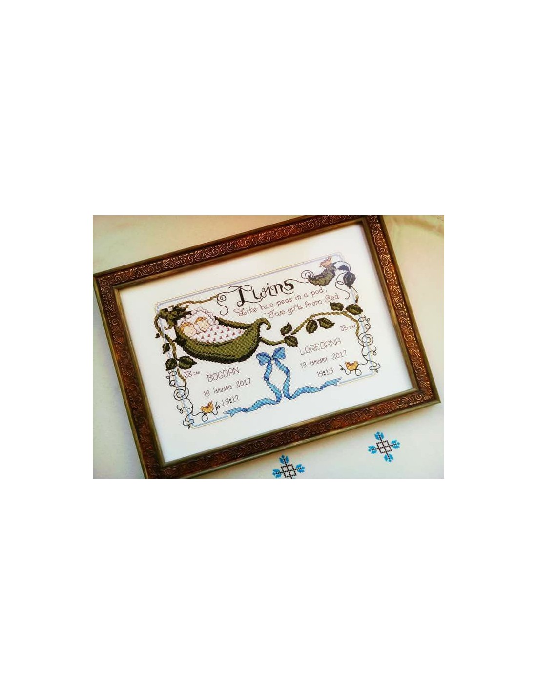Tabloul este personalizat prin brodare manuală cu datele solicitate (data de naștere, ora, greutatea bebelușului, înălțime etc).