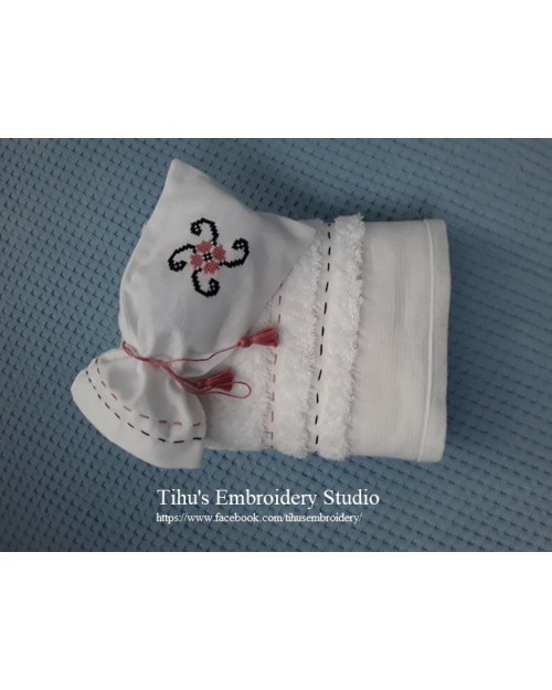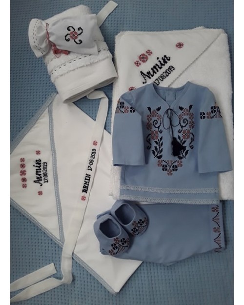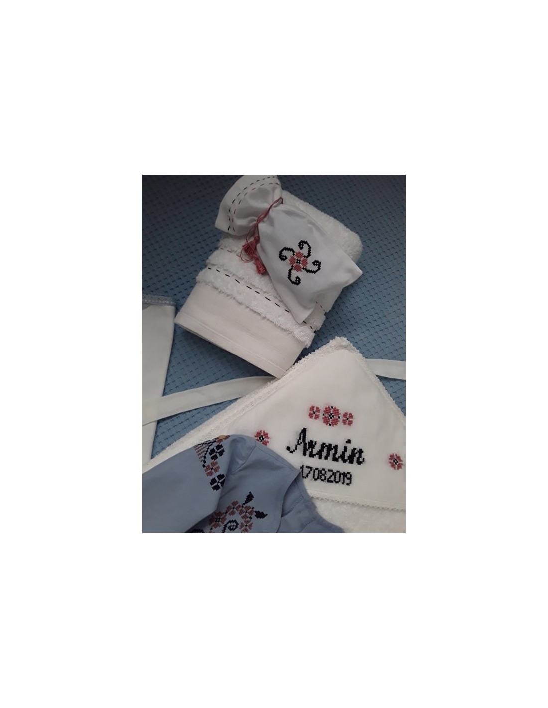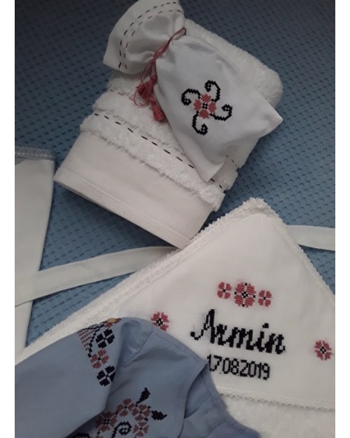 Trusoul de botez e creat din pânză naturală, tradițională românească, sustenabilă, 100 % bumbac, prietenoasă ecosistemului și corpului bebelușului, antialergică și aerată care lasă pielea să respire. Trusoul include: prosopul bebelușului, pânza de mir, fașă, prosop preot, săculeț pentru săpun. Toate articolele sunt personalizate cu informațiile solicitate.