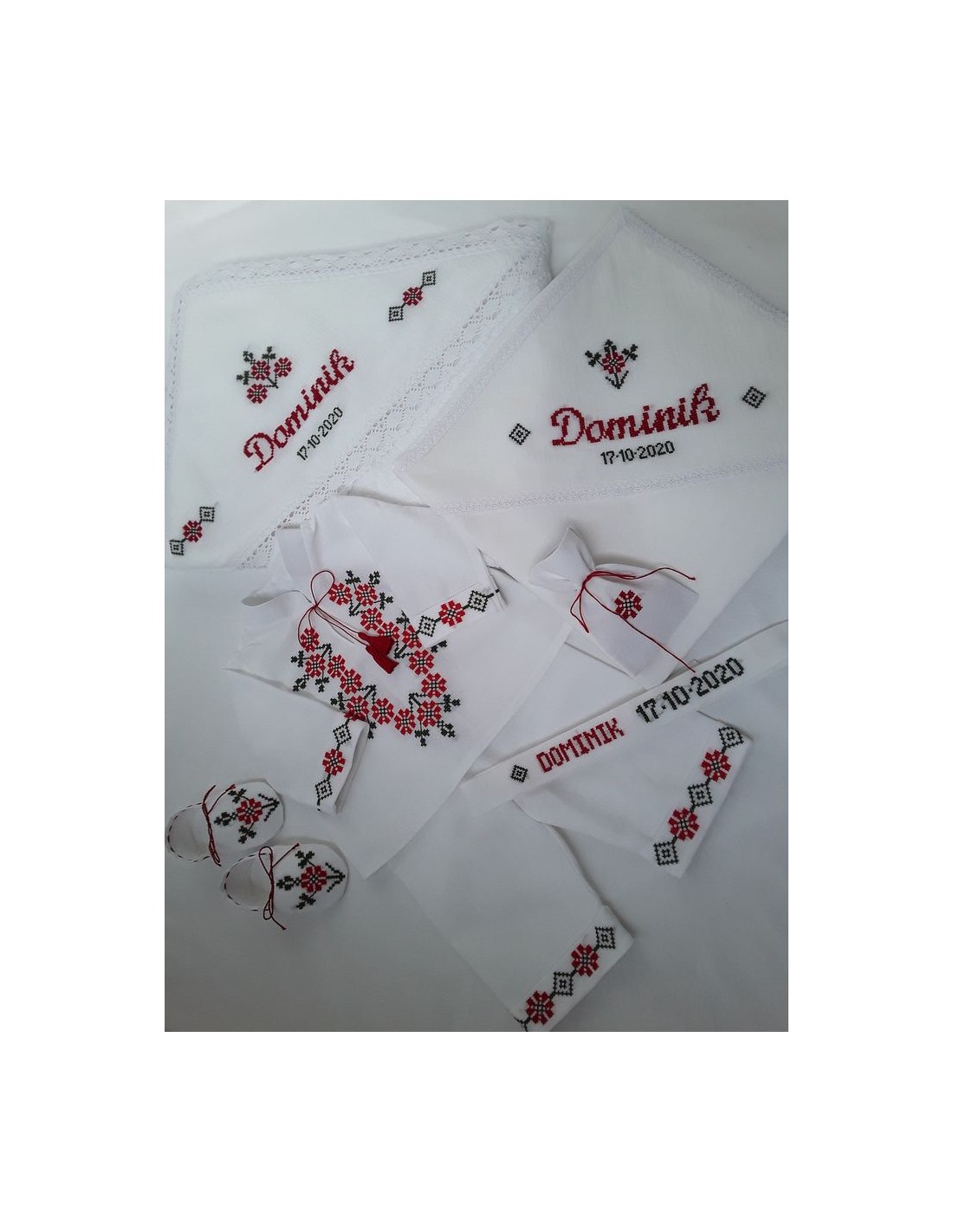 Trusoul de botez e creat din pânză naturală, tradițională românească, sustenabilă, 100 % bumbac, prietenoasă ecosistemului și corpului bebelușului, antialergică și aerată care lasă pielea să respire. Trusoul include: prosopul bebelușului, pânza de mir, fașă, prosop preot, săculeț pentru săpun. Toate articolele sunt personalizate cu informațiile solicitate.