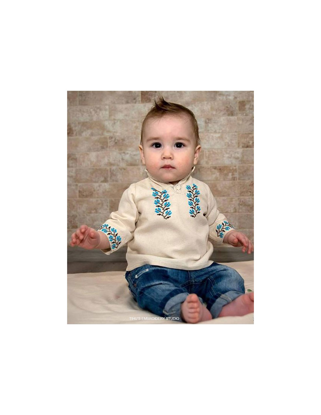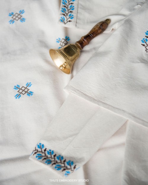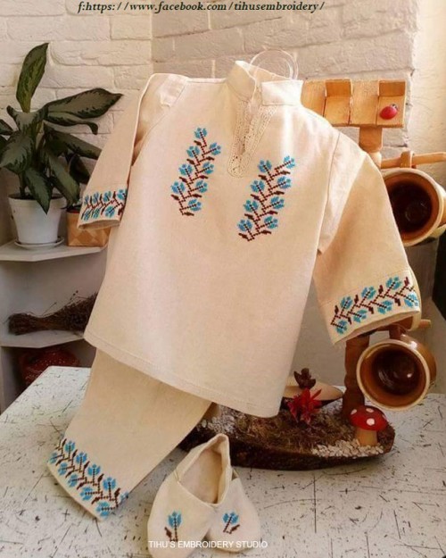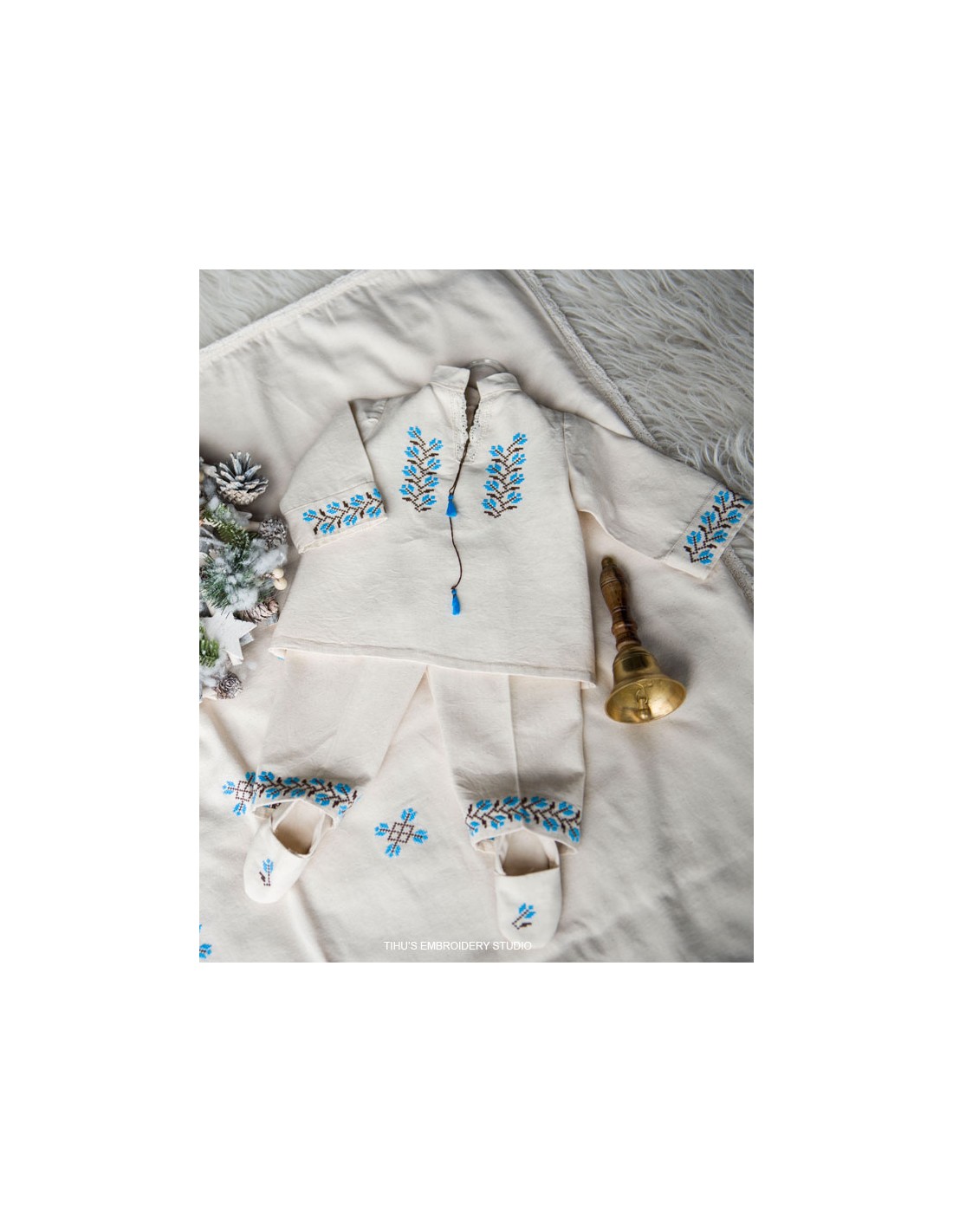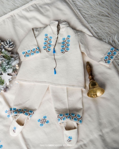 Trusoul de botez e creat din pânză naturală, tradițională românească, sustenabilă, 100 % bumbac, prietenoasă ecosistemului și corpului bebelușului, antialergică și aerată care lasă pielea să respire.