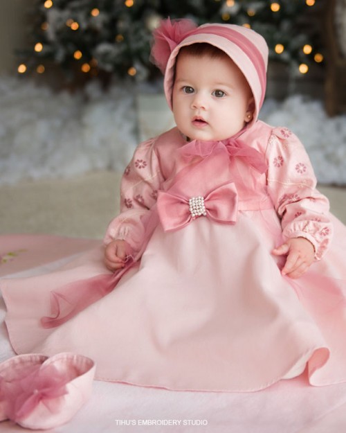 Trusoul include setul de străițe din rochiță, scufiță, botoșei și prosop. Rochița se închide cu nasturi la spate. Botoșeii sunt pe elastic.